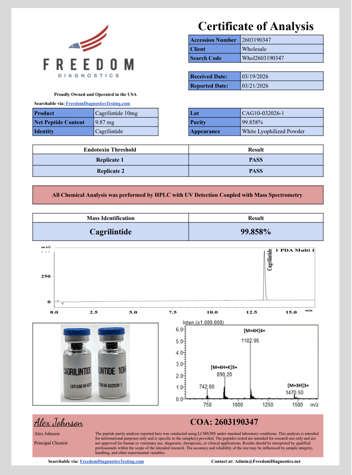 All labeled vials include product details and batch information including a QR Code* to the COA printed on each label