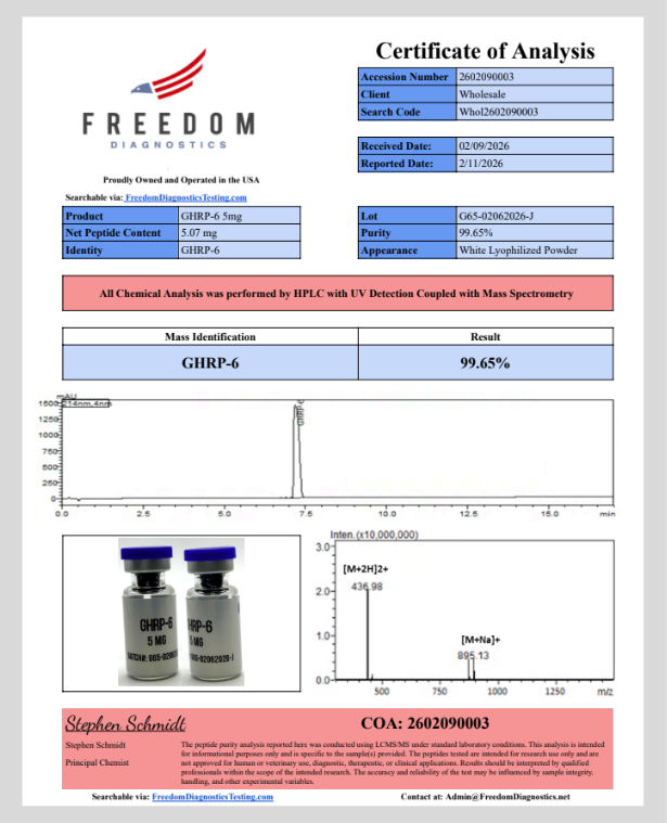 GHRP 6 is a synthetic hexapeptide examined in controlled scientific environments for its activity at the ghrelin receptor GHS R1a. Research models evaluate its influence on pulsatile growth hormone signaling, appetite pathways, metabolic responses, and recovery related processes. Compared to GHRP 2, GHRP 6 is more strongly associated with hunger signaling while still supporting GH and IGF 1 related experimental activity.