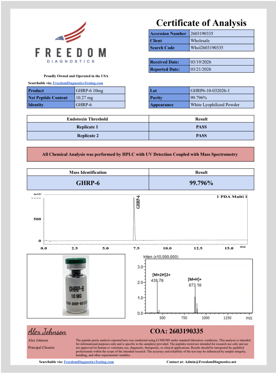 All labeled vials include product details and batch information including a QR Code* to the COA printed on each label