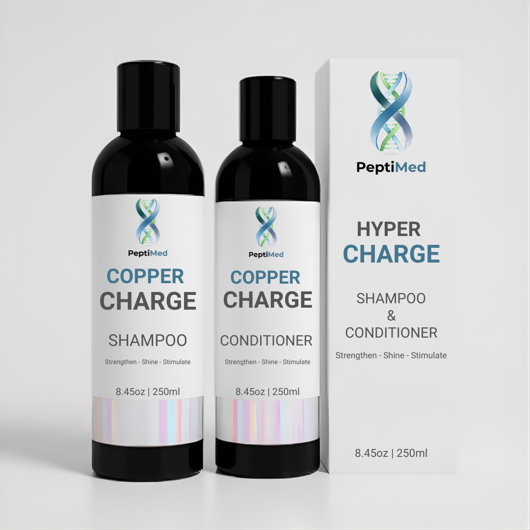 A complete sulfate-free peptide shampoo and conditioner system designed to support stronger, smoother, shinier hair using copper peptides, biotin, ceramides, and nourishing botanical extracts.