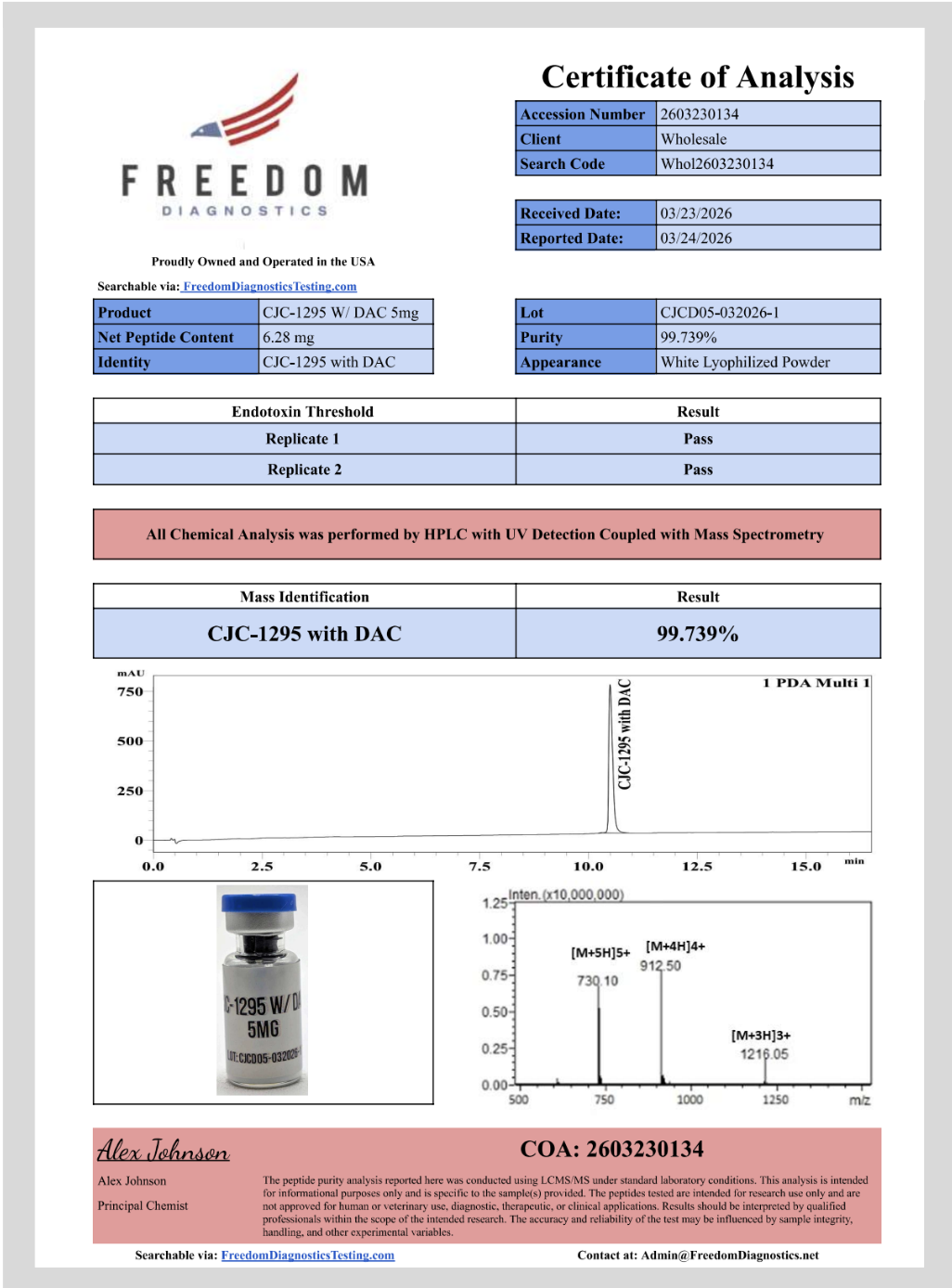 All labeled vials include product details and batch information including a QR Code* to the COA printed on each label