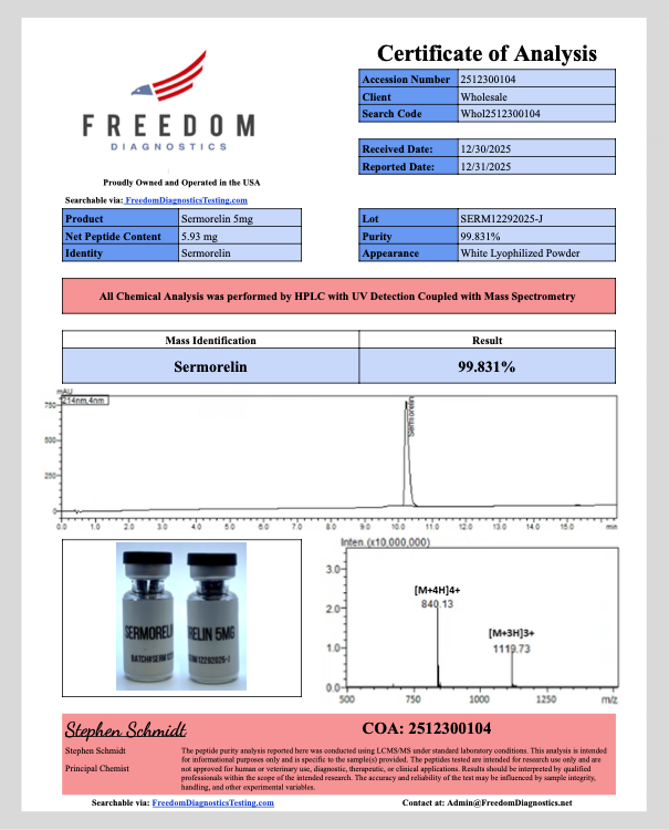 In professional research environments, Sermorelin is studied for its ability to promote physiologically regulated, pulsatile GH secretion through natural feedback mechanisms. Because it works upstream by engaging GHRH receptors rather than acting directly on GH pathways, it allows researchers to model somatotropic axis behavior in a controlled and measurable way.
